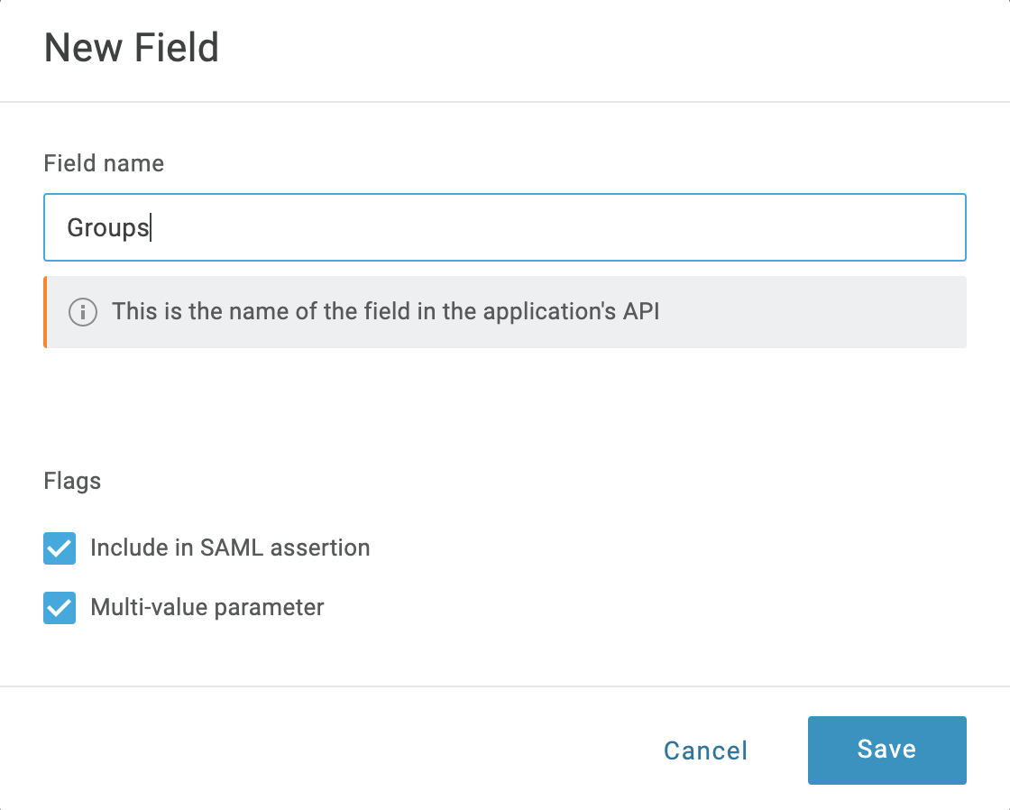 In Group Attribute Name, enter the name of the Field Group you configured in OneLogin.