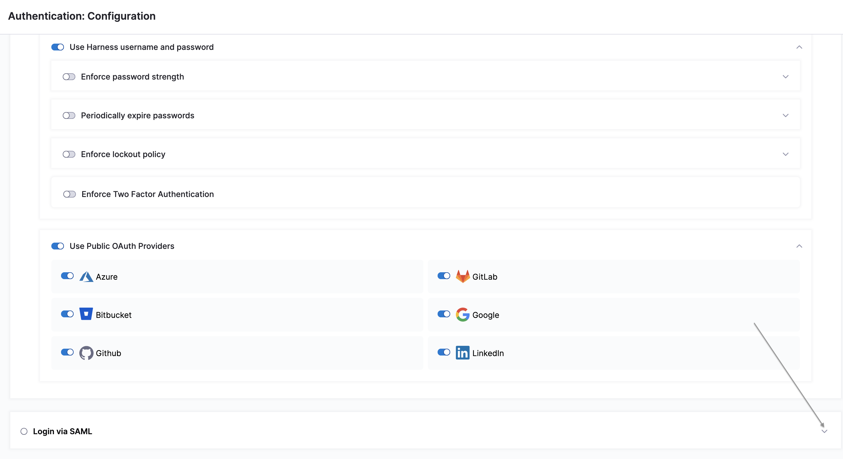 Click to expand the Login via SAML section.